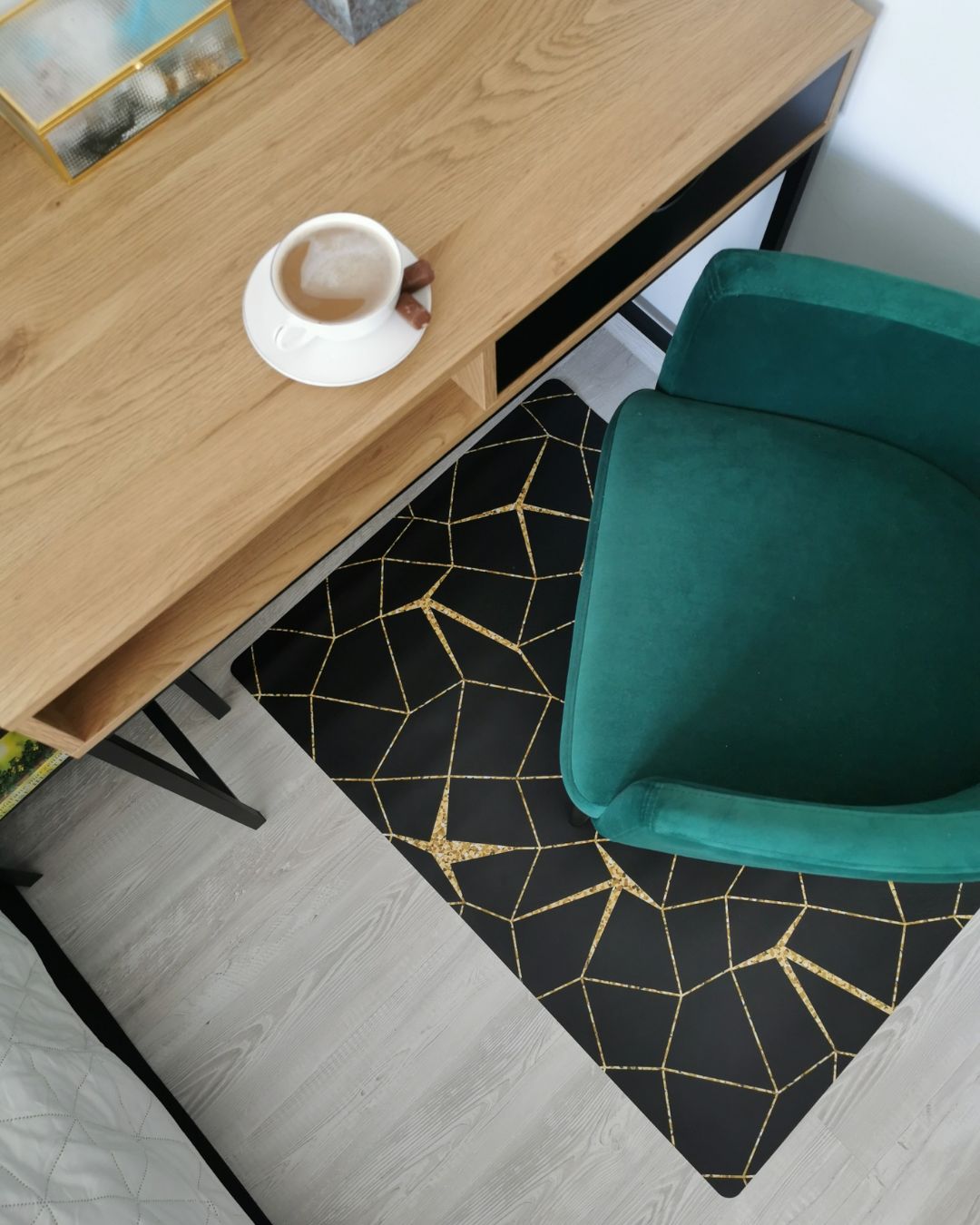 - Tapete para escritório Mosaico dourado e preto
